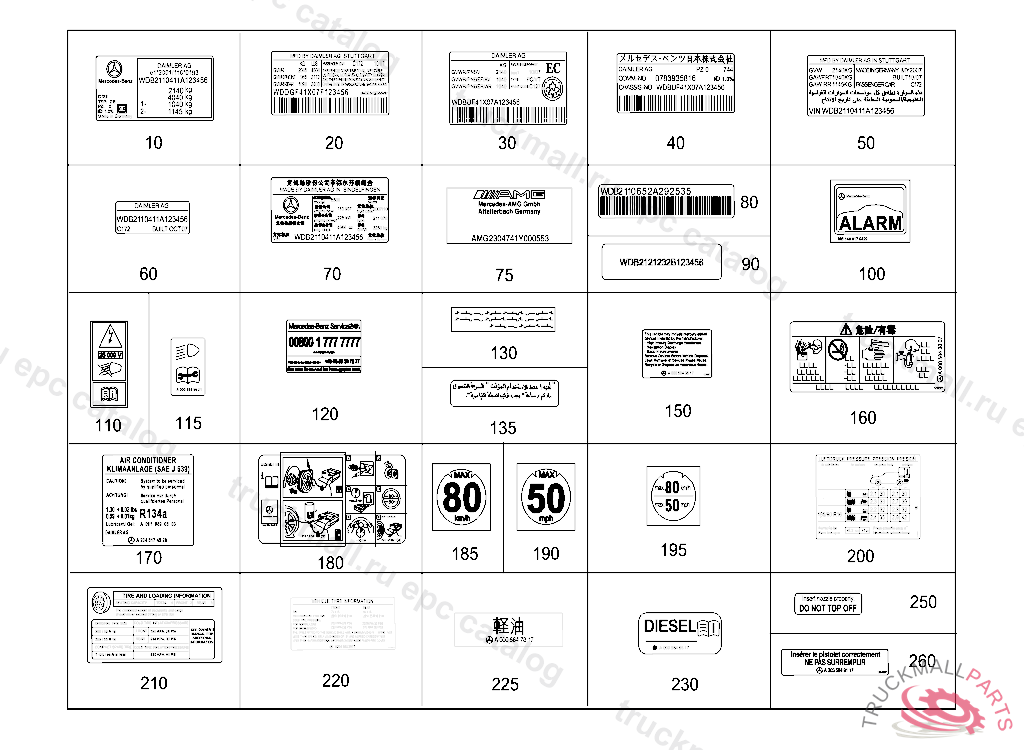 CERTIFICATION PLATE CERTIFICATION PLATE, F 53986820100630 WHEN ORDERING, THE AMG COUNT NUMBER MUST BE SPECIFIED FOR "SPECIFICATIONS FOR STAMPING THE TYPE PLATE" UNDER VIN, SEE VEDOC/CERTIFICATION