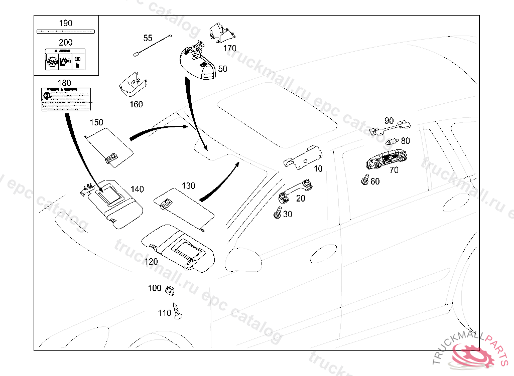 QUICK-RELEASE CLIP SUN VISOR ON THE RIGHT, Replaced By: A1648100212