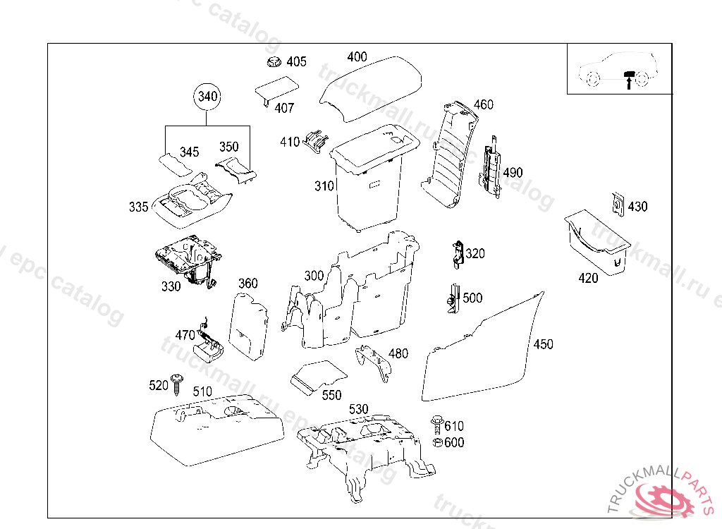 STOWAGE COMP. WITH COVER CENTER CONSOLE IN REAR, TO BE ADAPTED DURING ASSEMBLY