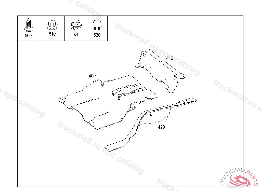 410 FRONT PANEL PILLAR PANELLING, LINING ON FLOOR AND FOOTREST IL. 2