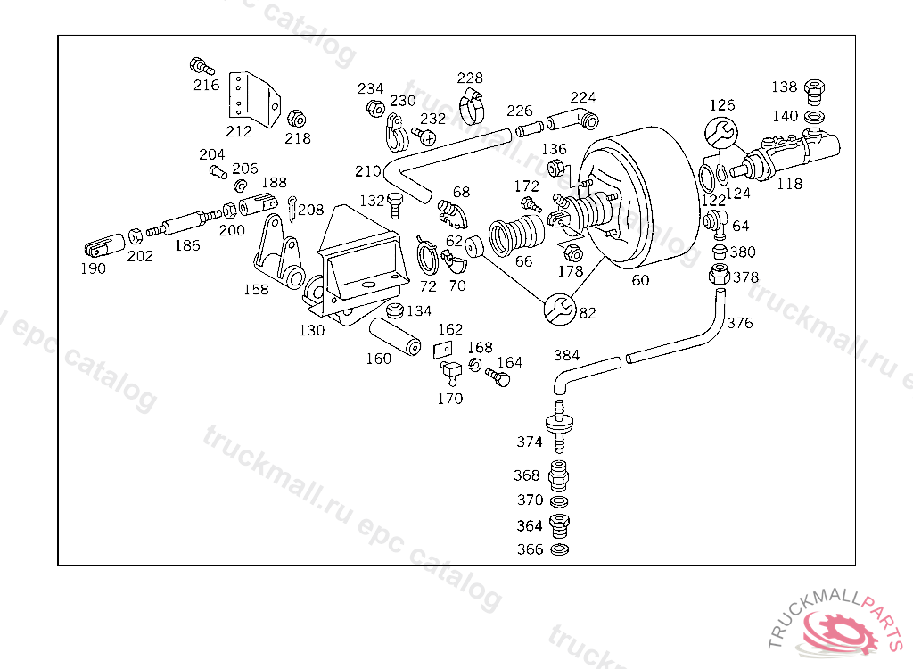 BRAKE BOOSTER ASSEMBLY , FROM CHASSIS 018154 ALSO INSTALLED ON 017661,017829 EXCEPT FOR 018155,018156,018159,018308,018310,018315,018317,018318,018327,018350,018355. EXHAUST STOCK OF OLD PARTS NUMBER FIRST UP TO CHASSIS 533350, Replaced By: A0024305630, +001A1262920074, +001N912011008000