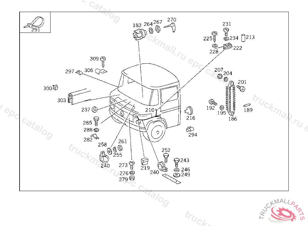 SCREW CABLE HARNESS MOUNTING, TRUCKS 10/50 UP TO CHASSIS 145736 ALSO INSTALLED ON,SEE FOOTNOTE 2,EXCEPT FOR,SEE FOOTNOTE 3, 20/60 UP TO IDENT NO. 148036 EXCEPT FOR 140555,142078 CONTINUED,SEE FOOTNOTE 4