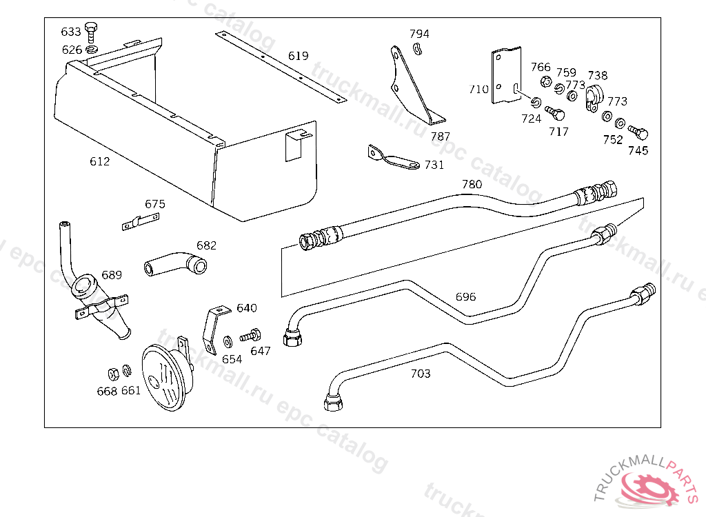 BRACKET HORN TO BRACKET AND TO ENGINE CROSS MEMBER,RESP., UP TO CHASSIS 611357 ALSO INSTALLED ON 611519,611537 EXCEPT FOR 610763,610832,610834,610848,610863