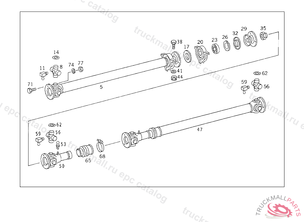 PROPELLER SHAFT FRONT,FROM TRANSMISSION TO INTERMEDIATE BEARING