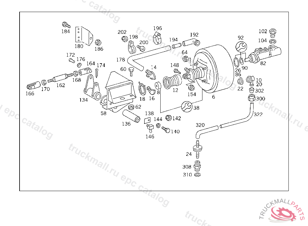 BRAKE BOOSTER ASSEMBLY , FROM CHASSIS 018154 ALSO INSTALLED ON 017661,017829 EXCEPT FOR 018155,018156,018159,018308,018310,018315,018317,018318,018327,018350,018355. EXHAUST STOCK OF OLD PARTS NUMBER FIRST UP TO CHASSIS 533350, Replaced By: A0024305630, +001A1262920074, +001N912011008000