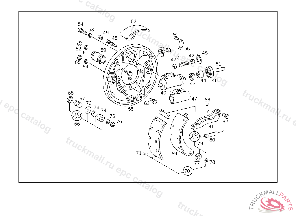 BRAKE ANCHOR PLATE RIGHT, UP TO CHASSIS 4 138143,FROM CHASSIS 4 138144 SEE 742.100 UNIT SPARE PARTS LIST