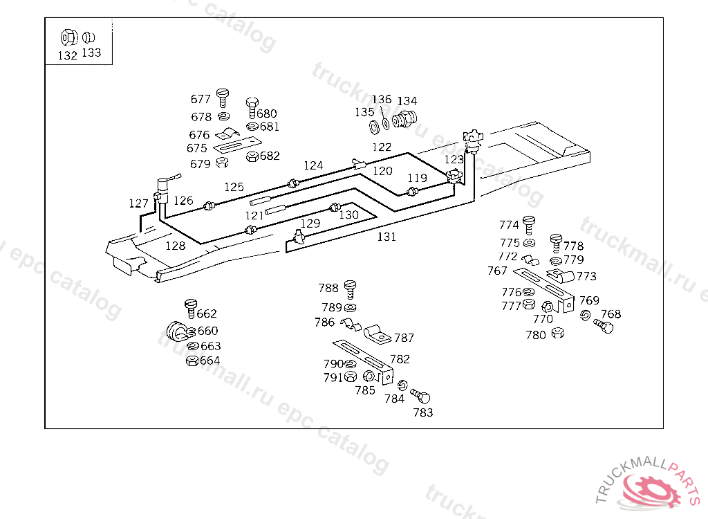 LINE FROM AIR RESERVOIR T-FITTING TO T-FITTING 15X1.5 MM, USED WITH HYDRAULIC BRAKE,UP TO CHASSIS 588185