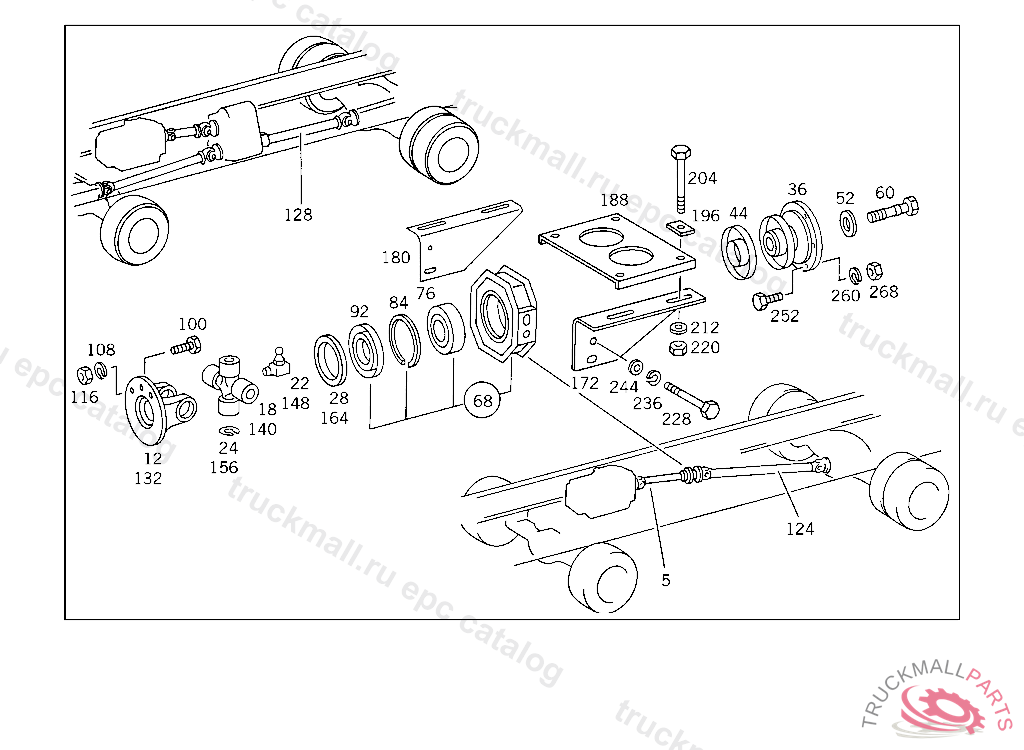 PROPELLER SHAFT FROM PROPELLER SHAFT BEARING I TO REAR AXLE 1132 MM, PART IS ONLY OR ALSO SUPPLIED AS RECONDITIONED PART