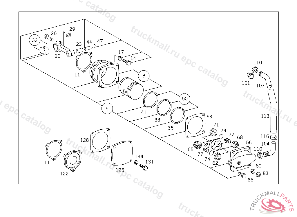 CYLINDER LINER FOUR-HOLE MOUNTING,WITH PISTON 77.00 MM, UP TO ENGINE 283201 YEAR OF MANUFACTURE 1978 TO BE SEALED WITH SEALING MATERIAL