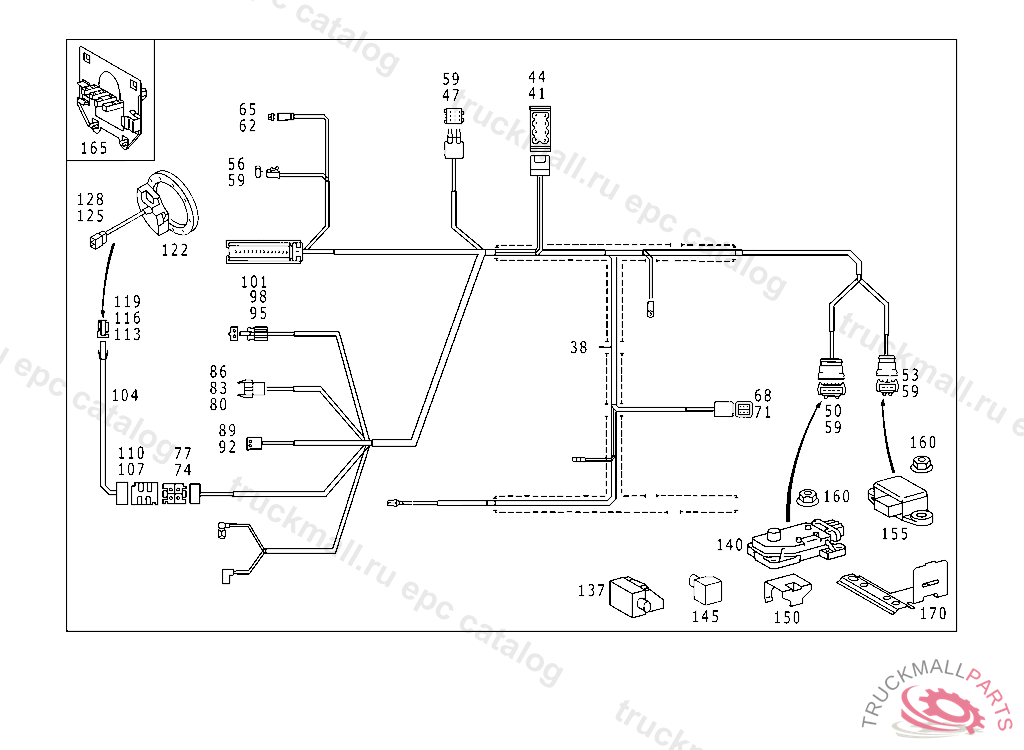 CABLE HARNESS LOCK ANGLE SENSOR COCKPIT, A 394036 X 001165 EXCEPT CODE 807 ALSO INSTALLED IN VEHICLE TO A 394035 WITH CODE 808