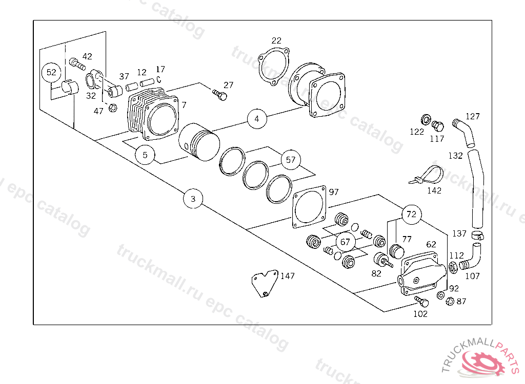 CYLINDER LINER FOUR-HOLE MOUNTING,WITH PISTON 77.00 MM