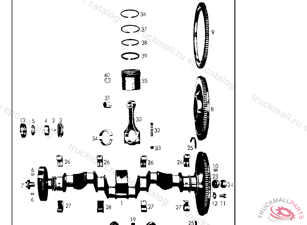 KURBELWELLENRAD. ERSETZT DURCH 180 052 02 03 UNTER MITLIEFERUNG VON AUSGLEICHRING 180 031 00 52 BIS 04 52 NACH BEDARF BIS MOTOR-NR. 00096/52
