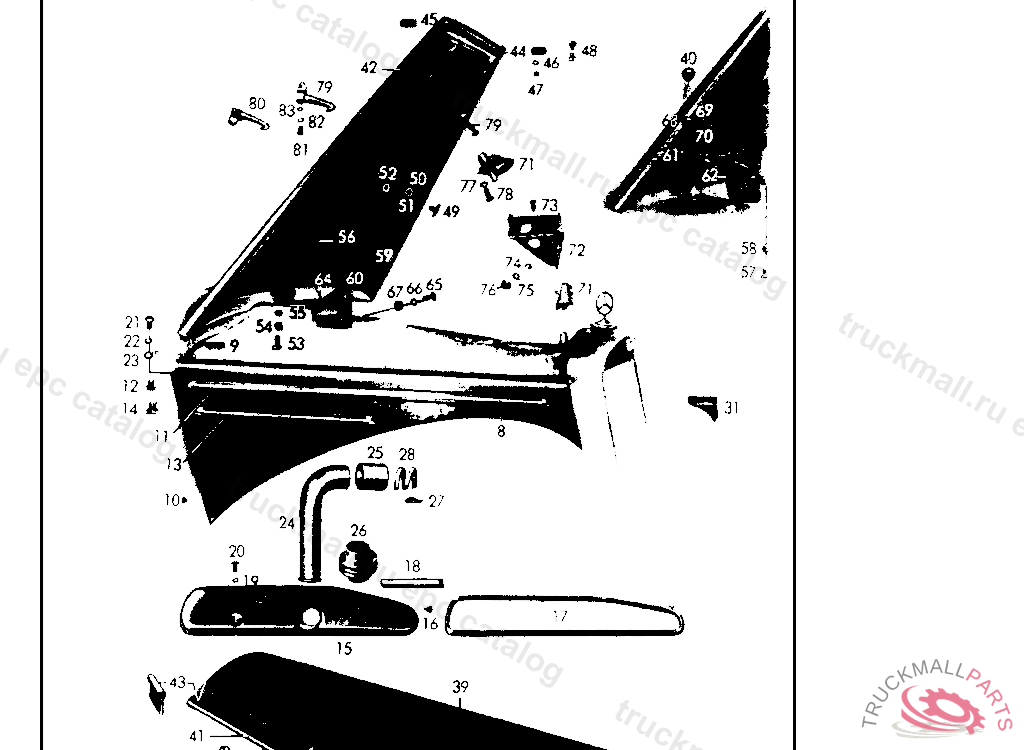 MOTORHAUBENSEITENTEIL RECHTS MIT ANSAUGHUTZE BM.: 010, 013