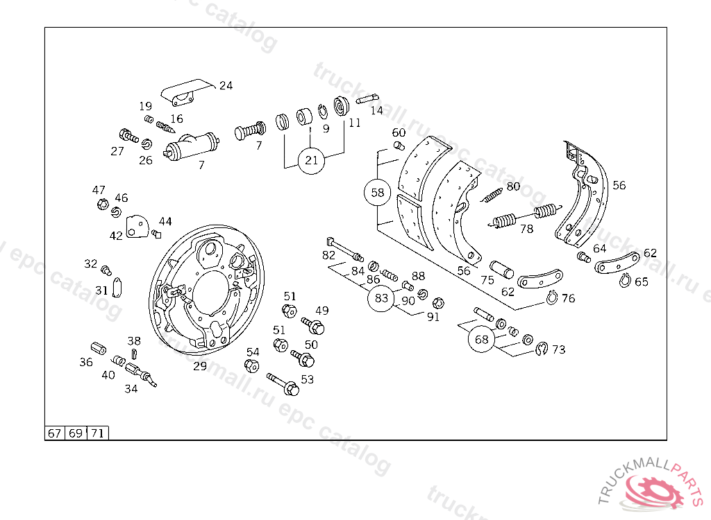 REPAIR KIT BRAKE SHOE SHACKLE, UP TO CHASSIS 910369 ALSO INSTALLED ON 500001-501455,FROM CHASSIS 910370 AND 501456-599999 SEE SPARE PARTS LIST 103