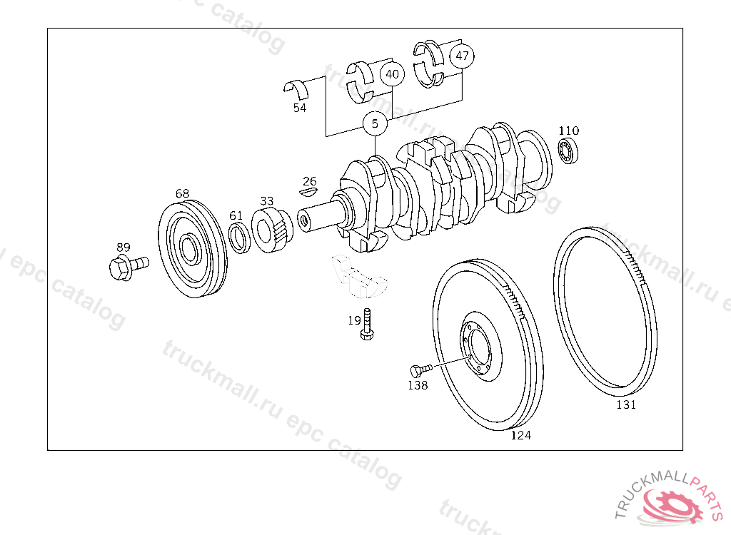 CRANKSHAFT WITH CRANKSHAFT BEARING SHELLS AND CONNECTING ROD BEARING SHELLS
