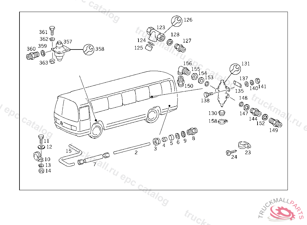 LINE FROM ELBOW FITTING TO AIR RESERVOIR NO.1, USED WITH HYDRAULIC BRAKE UP TO CHASSIS 209475 EXCEPT FOR 209273,209446,209461,209465,209471,209474.