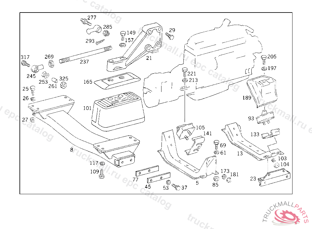 PROTECTIVE PLATE RUBBER MOUNTING TO FRONT CROSS MEMBER, UP TO IDENT NO. 632661 EXCEPT FOR,500001-599999