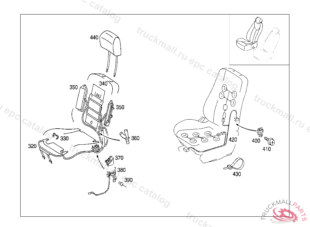 SEAT ADAPTER MULTI-CONTOUR BACKREST,RIGHT FRONT SEAT, F 619721 EXCEPT CODE 807 ALSO INSTALLED IN VEHICLE TO F 619720 WITH CODE 808