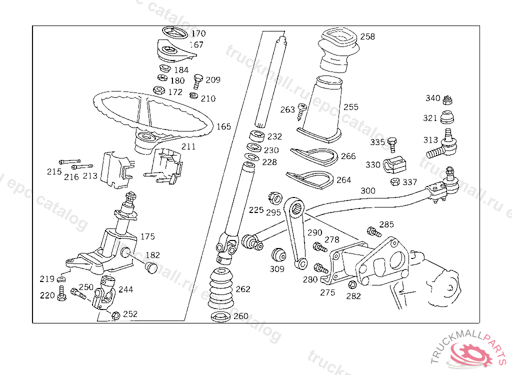 STEERING SHAFTLEMFOERDER, USED WITH SHORT MERCEDES-BENZ CAB