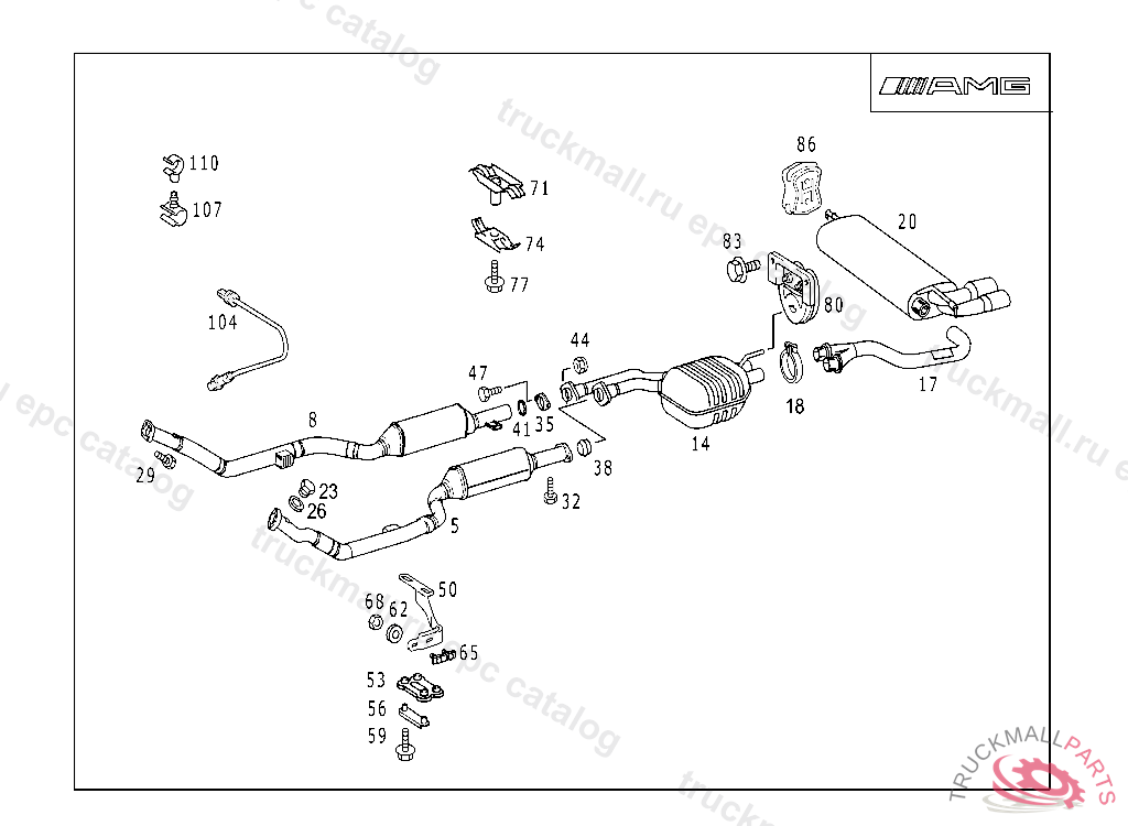 EXHAUST MUFFLER WITH PIPE REAR E55 AMG