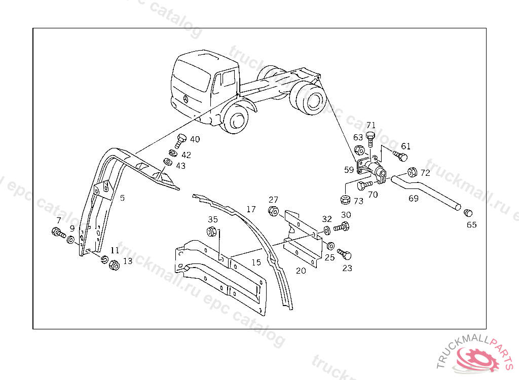 SUPPORT LEFT FENDER, WITH 385.068,069 ON VEHICLES WITH DB-CAB,ONLY ON 385.019 ONLY FOR VEHICLES HAVING NO MERCEDES-BENZ PLATFORM