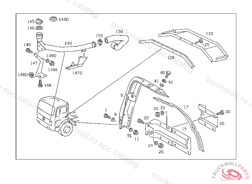 WASHER FENDER BRACKET TO FENDER, Replaced By: A0049902582