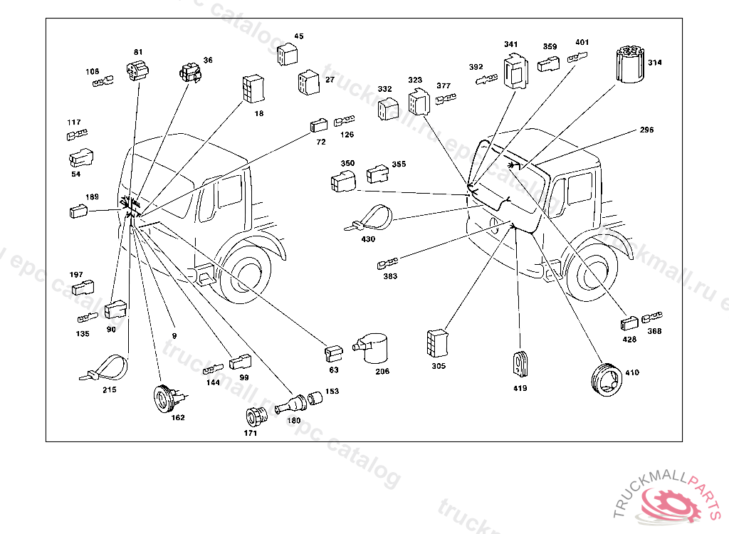 PIN BUSHING HOUSING. PLUG HOUSING FROM CHASSIS/CAB CONNECTION POINT TO TACHOGRAPH