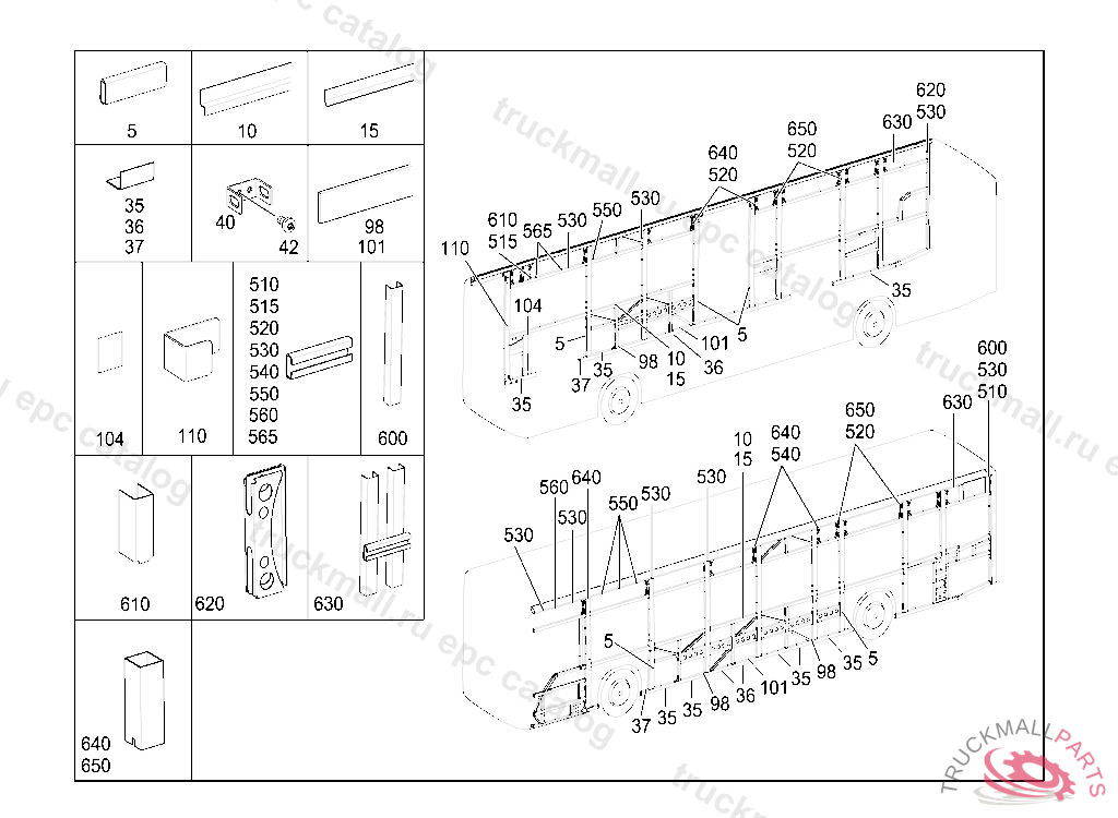 RAIL RIGHT 105 MM, TO BE ADAPTED DURING ASSEMBLY