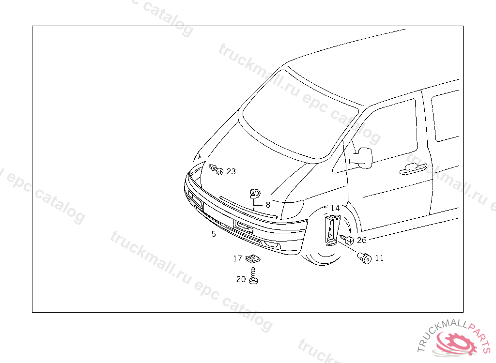 FRONT BUMPER FACE BAR READY TO BE PAINTED, USED W/OUTDOOR TEMPERATUR INDICATOR, UP TO IDENT NO.: 080879 ORDER ADDITIONALLY ALSO: A 638 542 00 38 FOR COLOR NUMBERS FOR OUTSIDE PARTS,SEE FOOTNOTE 910 TO BE PAINTED PRIOR TO INSTALLATION