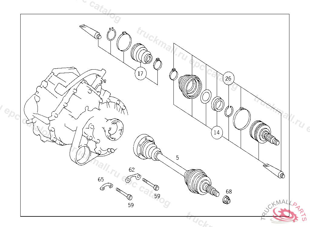 BOOT (PARTS SET) TRANSMISSION END, DELIVER ADDITIONALLY ALSO: 1 X A 638 334 00 72