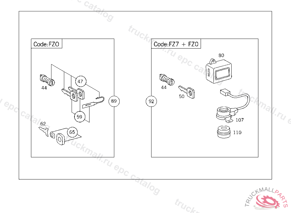 OUTFIT(LOCK,KEY,HANDLE) CENTRAL LOCKING MECHANISM, WHEN ORDERING, PLEASE DO NOT FAIL TO FILL OUT THE FORM COMPLETELY, AND TO PUT IT ON FILE. "ORDER FOR SPARE KEYS/LOCKING PARTS" IN CASE OF CRIMINAL INVESTIGATIONS, YOU SHOULD AT ANY TIME BE ABLE TO GIVE DOCUMENTARY EVIDENCE. WHEN REPLACING A LOCK SET WITH DIFERENT LOCK NO.,THE ENGINE CONTROL MODULE OR THE SHUT-OFF VALVE MUST ALSO BE REPLACED THEFT-RELEVANT PART