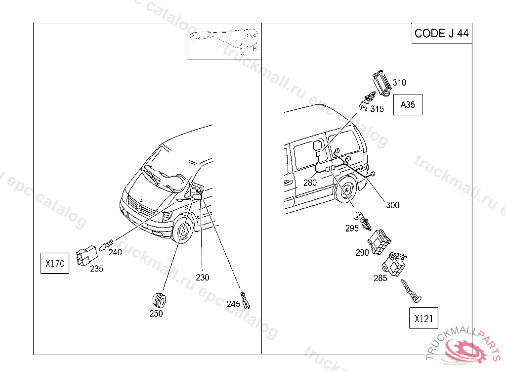 PIN BUSHING HOUSING. PLUG HOUSING FROM CHASSIS/CAB CONNECTION POINT TO TACHOGRAPH