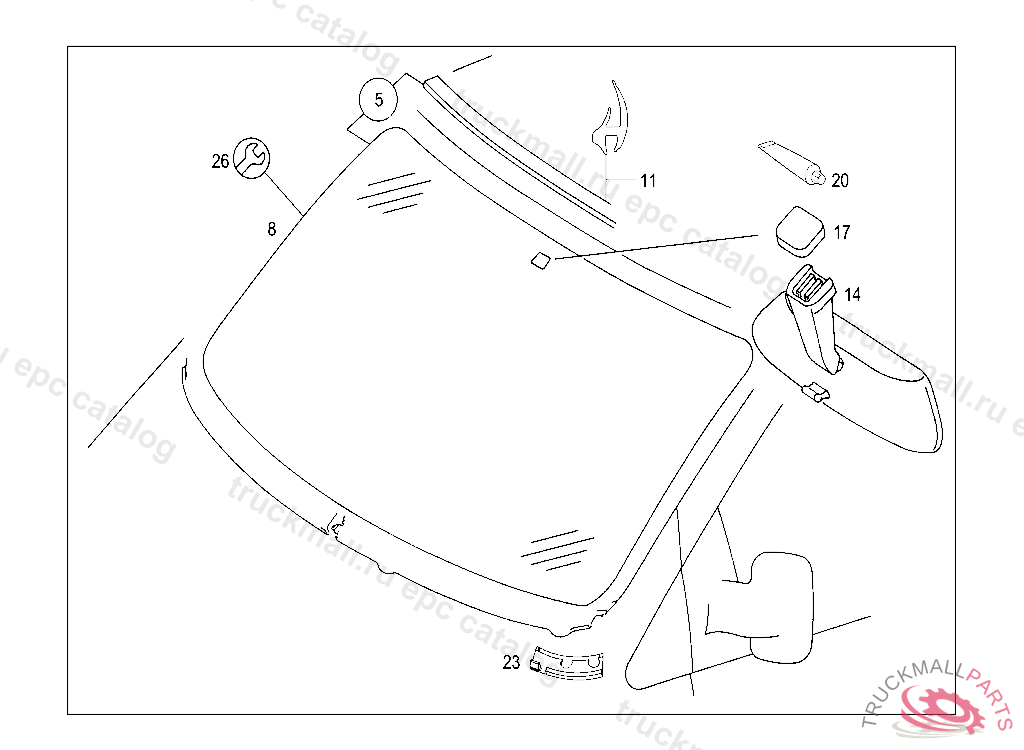 WINDSHIELD COLORLESS, ORDER ADDITIONALLY: 1X A 901 671 01 15, 1X A 005 989 47 71, EXCEPT TAIL GATE, WITHOUT GLASS PANE, Replaced By: A6386701401