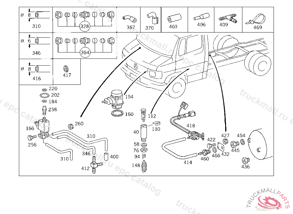 HOSE MASTER SWITCH AND VACUUM SWITCH 40 MM, 023 164780 033 066774 123 158077 130 172061