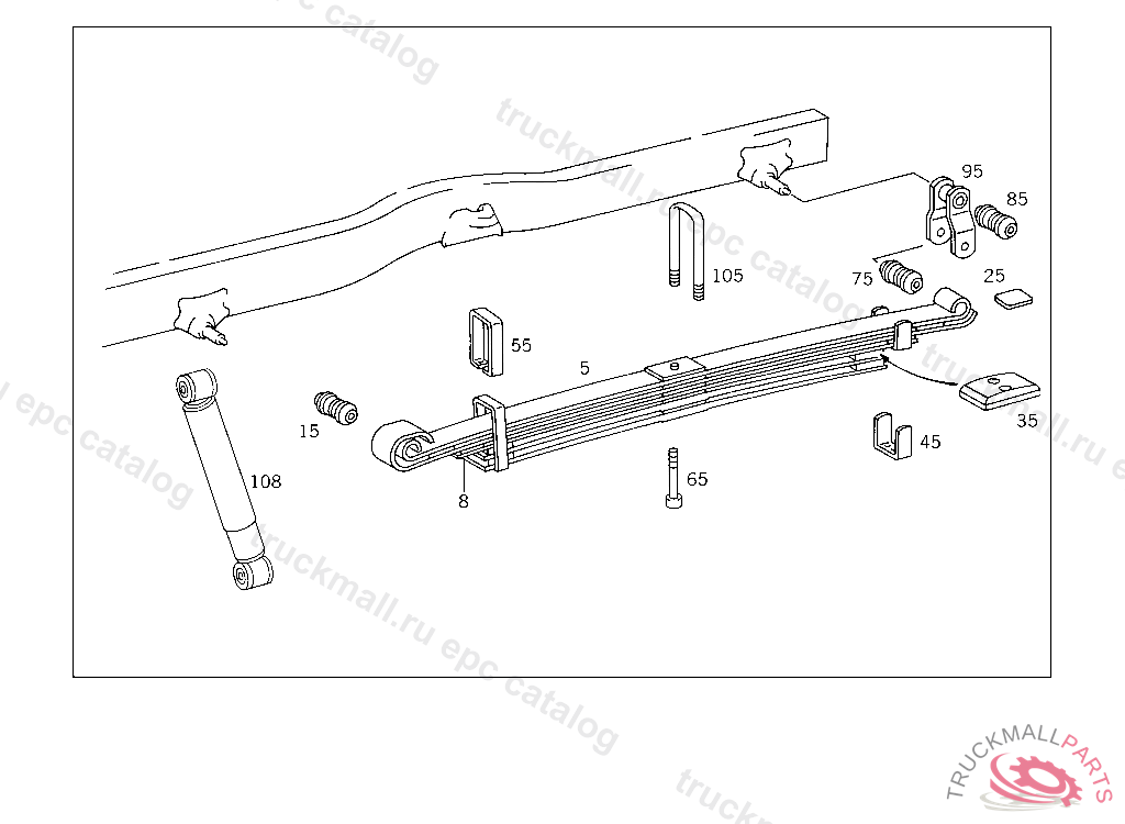 REAR SPRING , TO WHEELBASE 3150 MM ,WITH EXHAUST IN FRONT OF REAR AXLE ,REWORK IF NECESSARY. USE U-BOLT + GUIDE PLATE + FITTED SCREW AS REQUIRED ONLY REPLACEABLE BY PAIRS, Replaced By: A6673204206, +002A6703200175