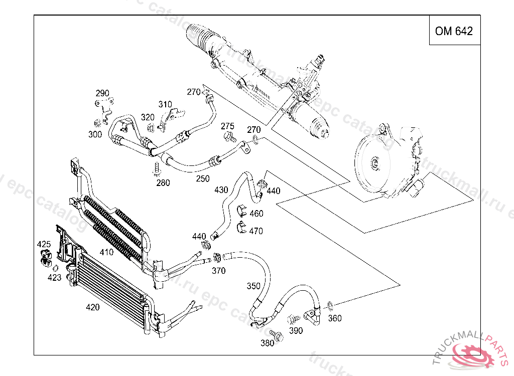 LOW-PRESSURE LINE FROM STEERING TO COOLING PIPE
