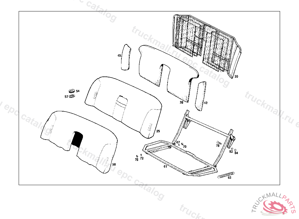 BACKREST DRALON-VELOURS, STATE COLOR NUMBER WHEN ORDERING FROM CHASSIS 000007 GREY: UP TO CHASSIS 000672, BLUE: UP TO CHASSIS 000598, BEIGE: UP TO CHASSIS 000567, GREY-BEIGE: UP TO CHASSIS 000610, 012, GR EEN-BEIGE: UP TO CHASSIS 000969