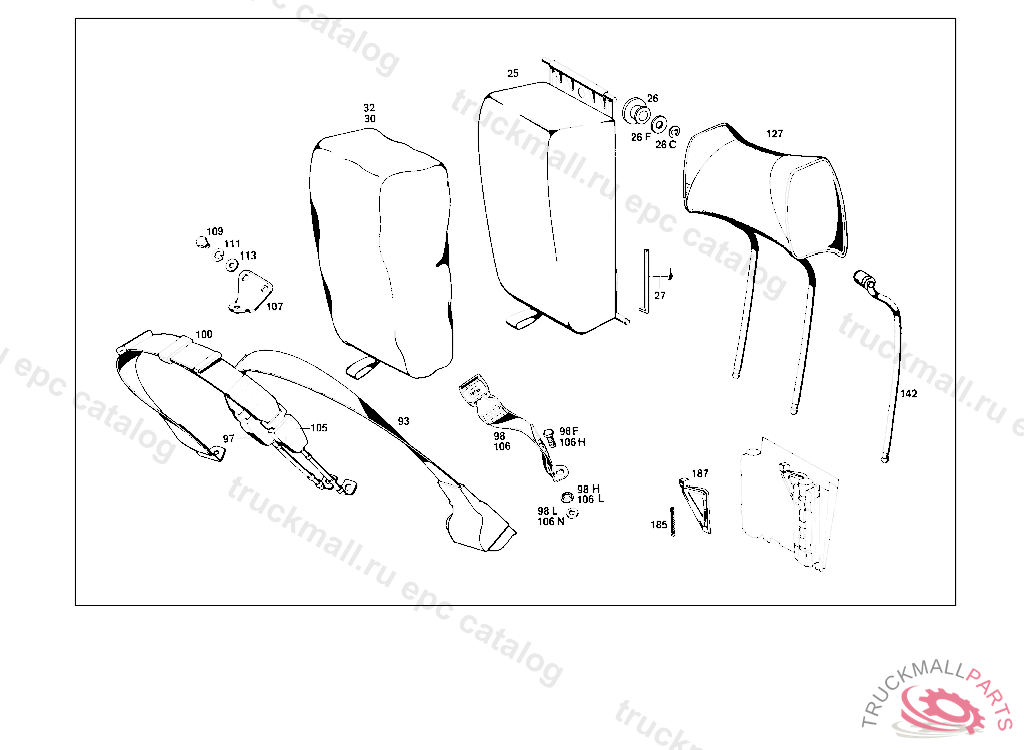 HEADREST COMPLETE,BUT LESS COVER, FROM CHASSIS:SEE FOOTNOTES 044-046