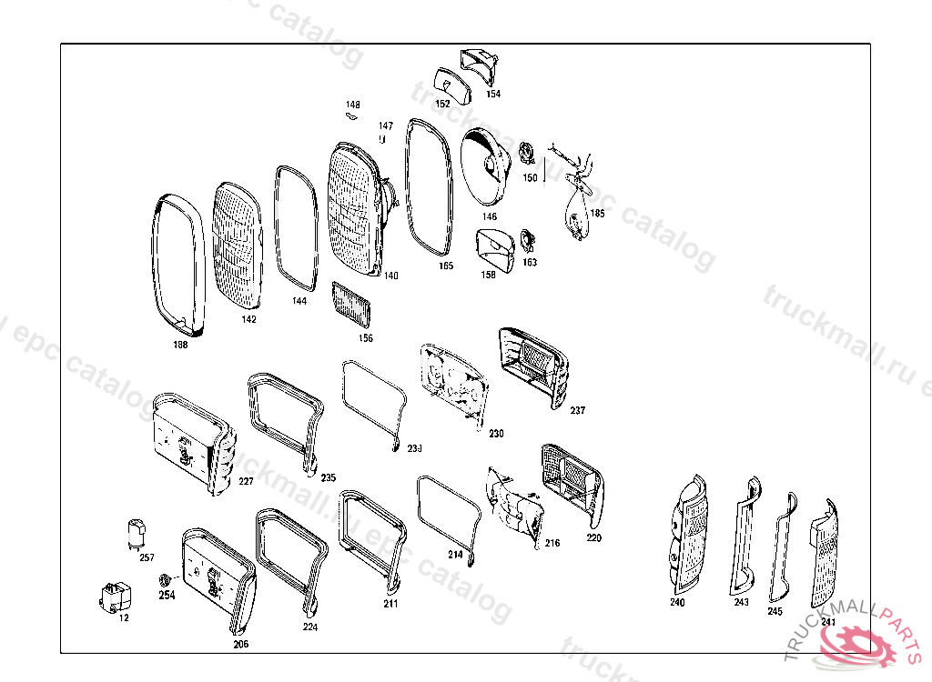 LENS RIGHT, UP TO CHASSIS: 015,115 200000 110 400000 FROM CHASSIS: 010 079808 015 092257 110 203813 112 204779 115 099682