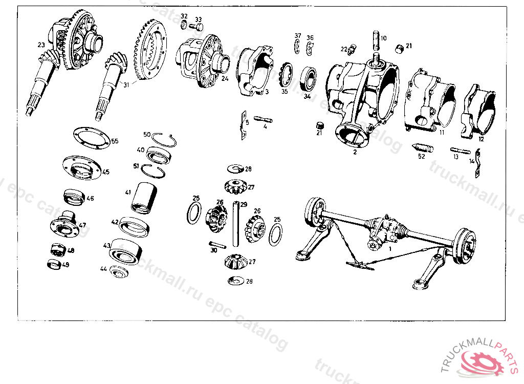 REAR AXLE HOUSING WITH MOUNTING UP TO CHASSIS NO. 45 02773 THE FOLLOWING PARTS HAVE TO BE DELIVERED 1 RUBBER RING 120 351 03 86 1
