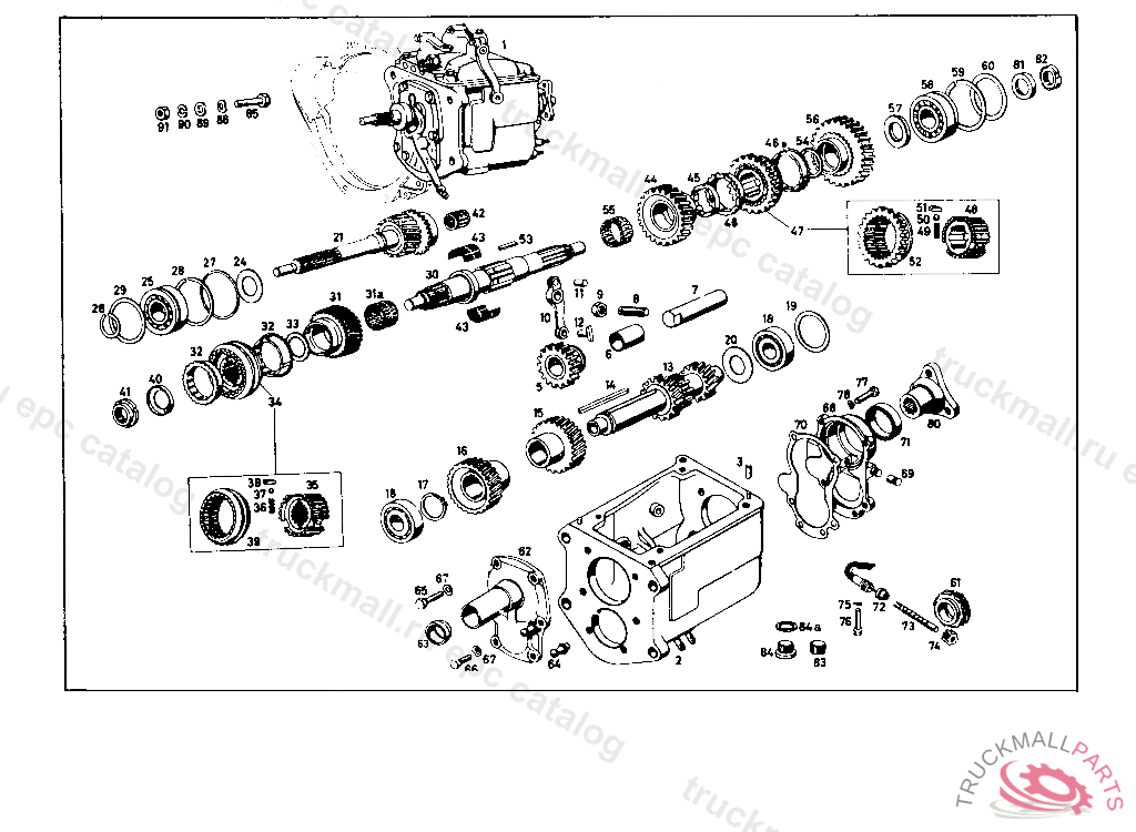TRANSMISSION WITHOUT CLUTCH HOUSING, BUT WITH RELEASE PARTS