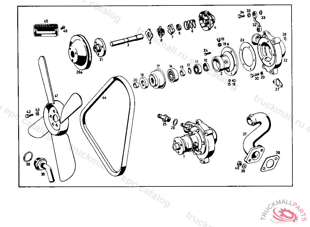 WATER PUMP, COMPLETE THREADED NIPPLE 180 203 01 08 EXCHANGED AGAINST LOCKING SCREW M 16 X 1,5 DIN 906 FROM ENGINE