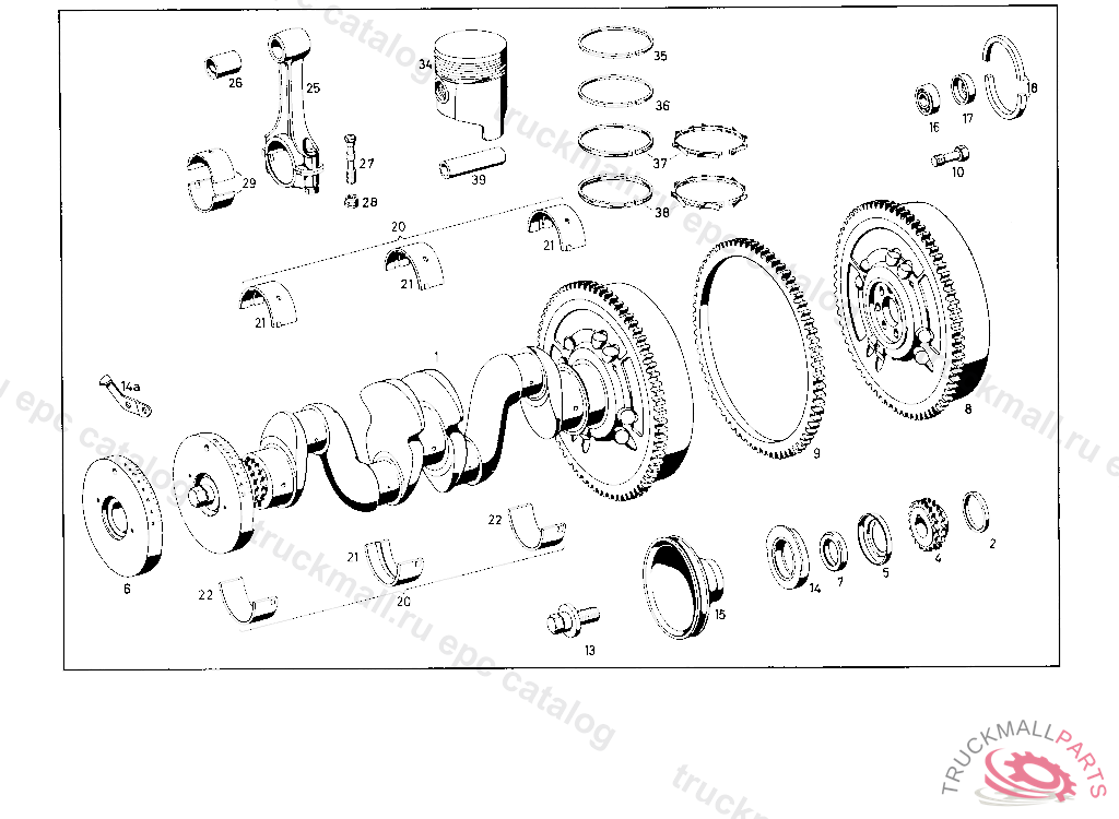 CRANKSHAFT WITH COUNTERWEIGHT, FLYWHEEL, CRANKSHAFT BEARING SHELLS AND CONNECTING ROD BEARING SHELLS GLYCO OPTIONAL