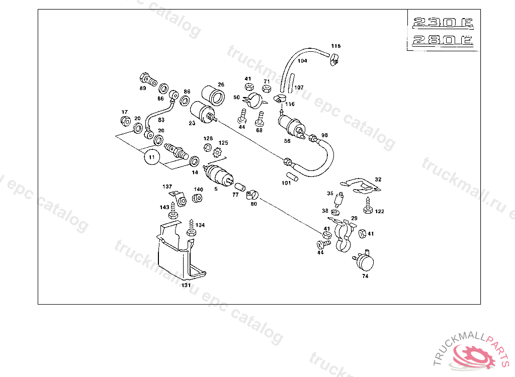 HOSE FROM VENT PIPE TO FILLER NECK 400 MM, 000 098845 003 049444 007 042062 083 000290 086 000150 093 000121 102 079297 103 079274 105 099374 183 000405 190 000351