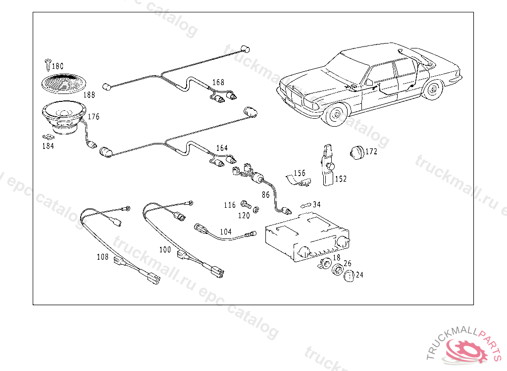ELECTRIC CABLE LOUDSPEAKER CONNECTION CABLE, FROM CHASSIS 116.020 037452 116.024,025 039538 116.028,029 025862 116.032,033 034710