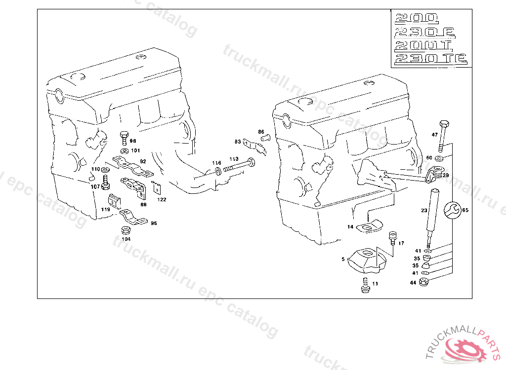 SCREW ENGINE FRONT MOUNTING TO ENGINE SUPPORT, 000 042295 003 019476 102,103 029067 105 038078