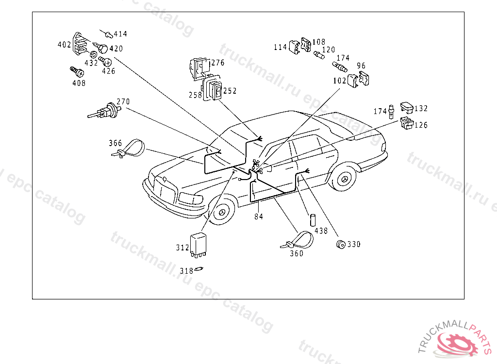 ELECTRIC CABLE FROM SWITCH CLUSTER TO FRONT AND REAR DOOR WINDOW REGULATOR MOTORS, 023 066333 033 030919 123 047598 130 060954