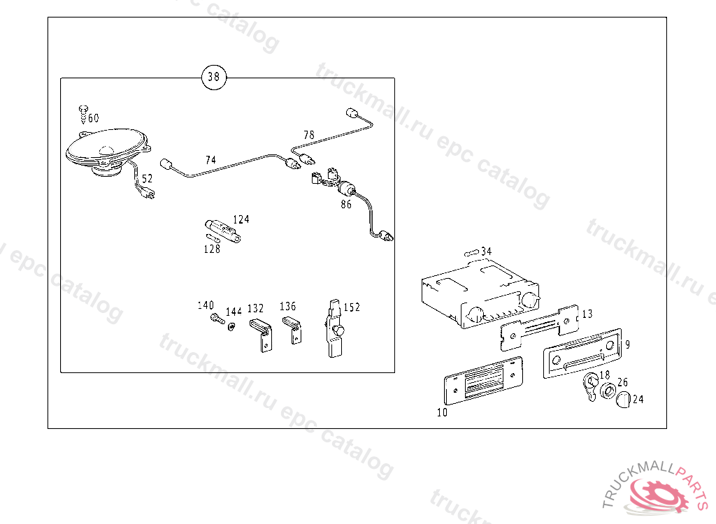 ELECTRIC CABLE LOUDSPEAKER CONNECTION CABLE, FROM CHASSIS 116.020 037452 116.024,025 039538 116.028,029 025862 116.032,033 034710