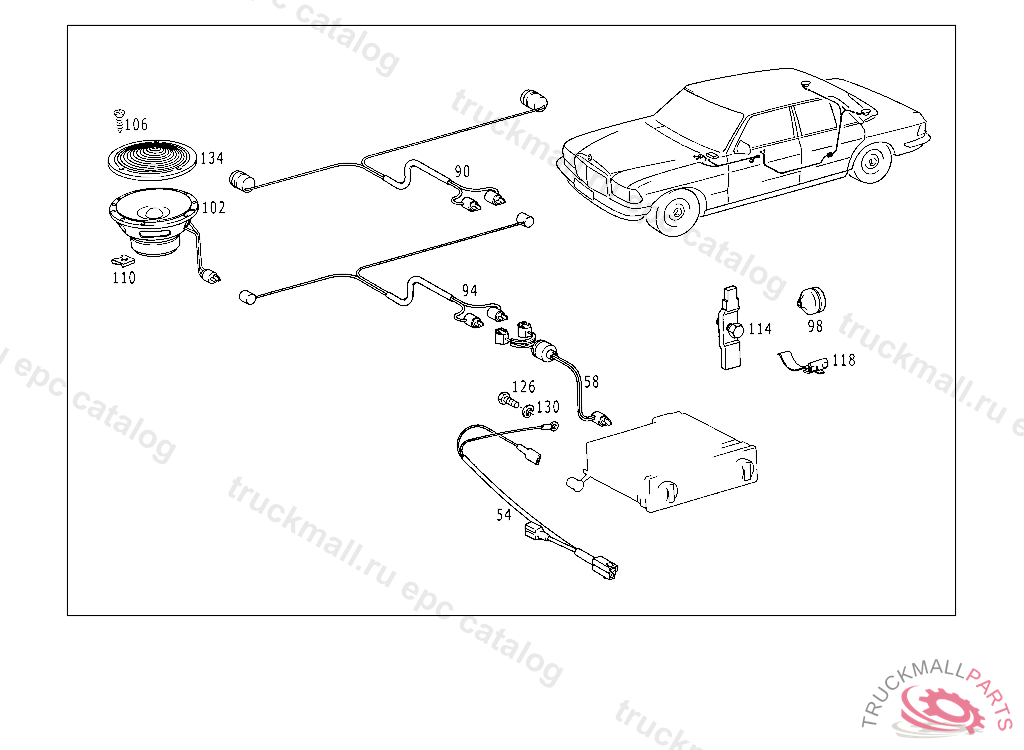ELECTRIC CABLE LOUDSPEAKER CONNECTION CABLE, FROM CHASSIS 116.020 037452 116.024,025 039538 116.028,029 025862 116.032,033 034710