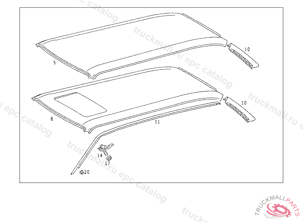ROOF PANELLING LESS BORES USED FOR ROOF RAILING FIXTURE, UP TO CHASSIS123.083 001656 086 001278 093 001161 183 002790 190 002812 FROM CHASSIS SEE SA 56396/02